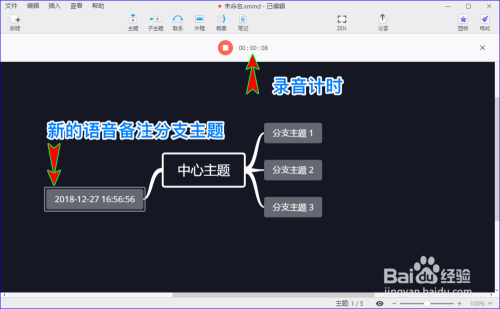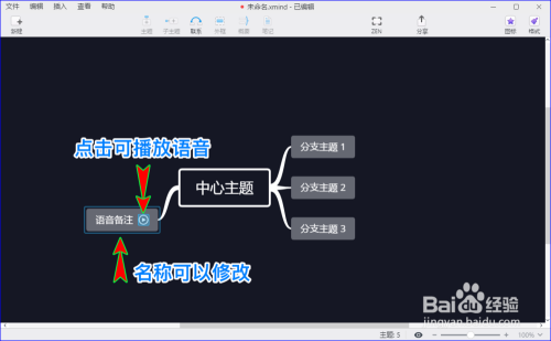 - 在xmind zen插入语音备注后,会主动生当作一个新的语音备注分支本家儿题。