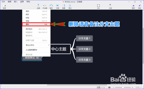 若是后面不想要这个语音备注了,我们可以选中这个语音备注分支本家儿题,像删除其他分支本家儿题一样去删除这个语音备注分支本家儿题了。
