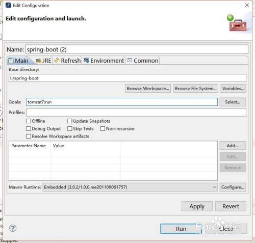 在maven build中我们首先找到Goals,然后在里面输入tomcat7:run,这里需要注重看节制台,期待其运行完当作