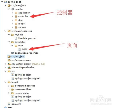 首先我们搭建一个简单的spring boot的框架,本家儿要目次品级有节制器controller,持久层dao,java bean 和办事层service,以及mybatis的设置装备摆设文件,最后就是用户页面