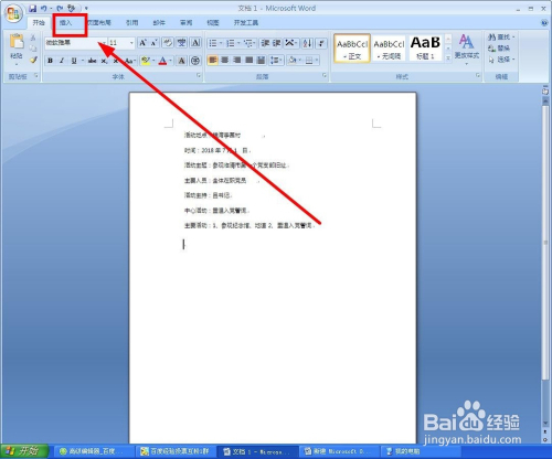 选中要转换的文本内容,找到菜单栏“插入”单击