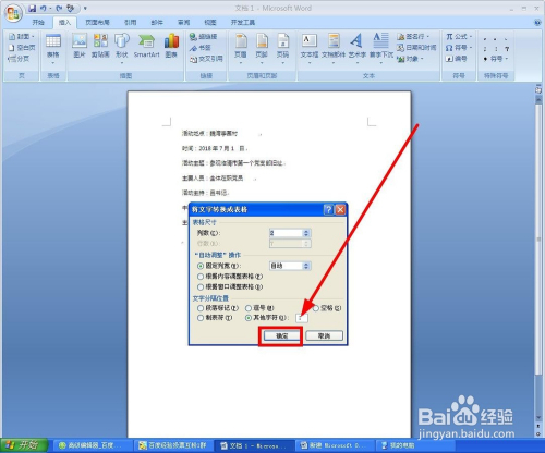 在文本转换当作表格对话框中,设置合适的列数和文字朋分位置,这里设为2列,朋分位置设为“:”