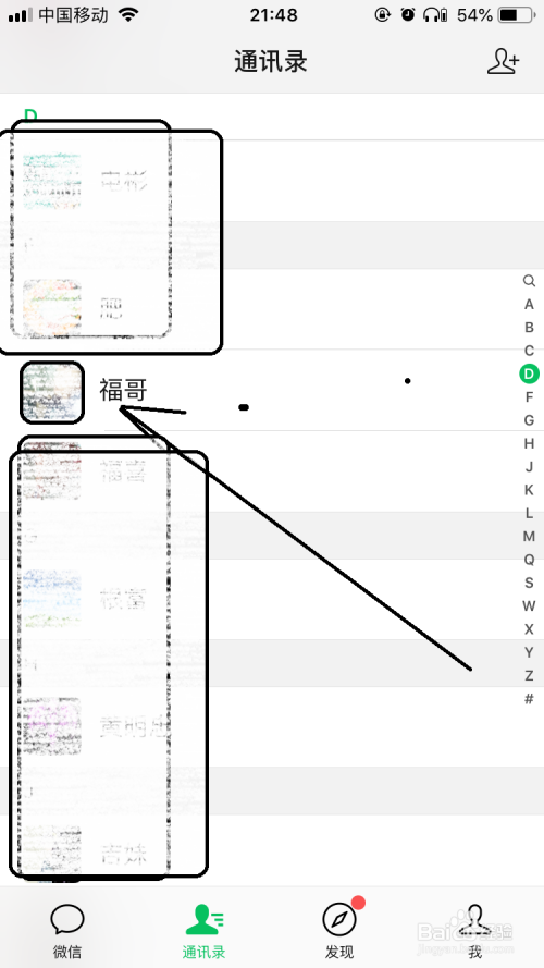 打开微信聊天东西界面后在通信录栏随便选择老友。