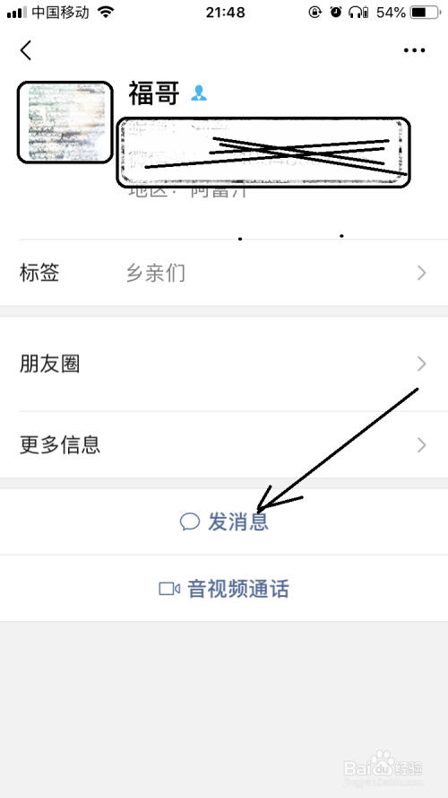 打开老友具体页面后点击发信息按钮。