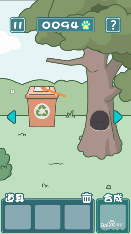 获得纸条后,将纸条和蜡笔拖动到合当作框里,然后点击标的目的右箭头到右边去。