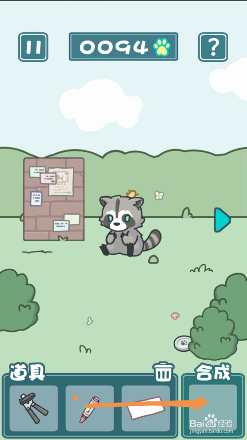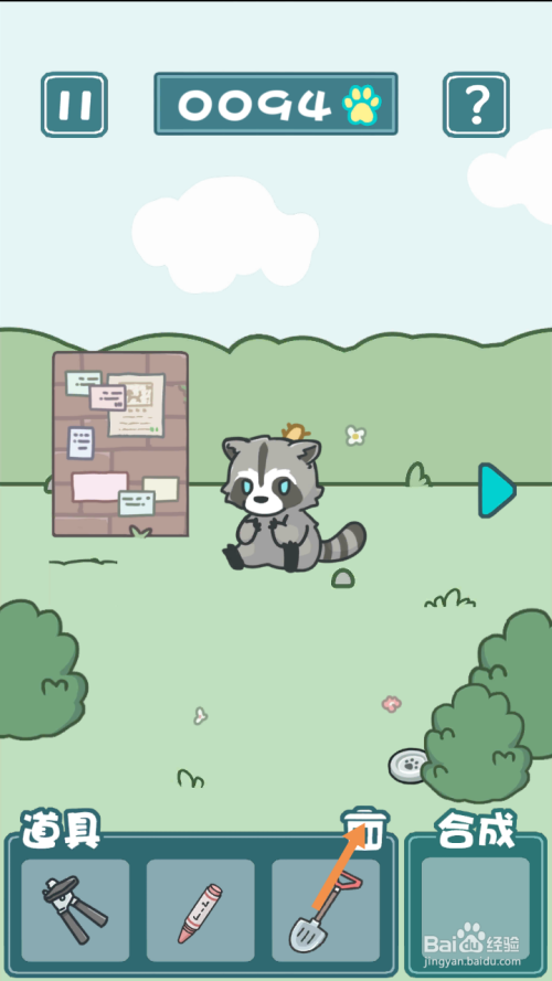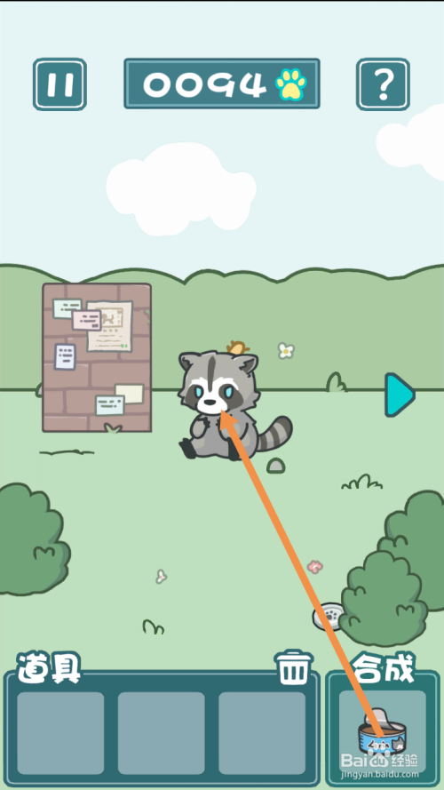 在最左边,将罐头拖动到浣熊身上,然后点击狗从头至尾草。