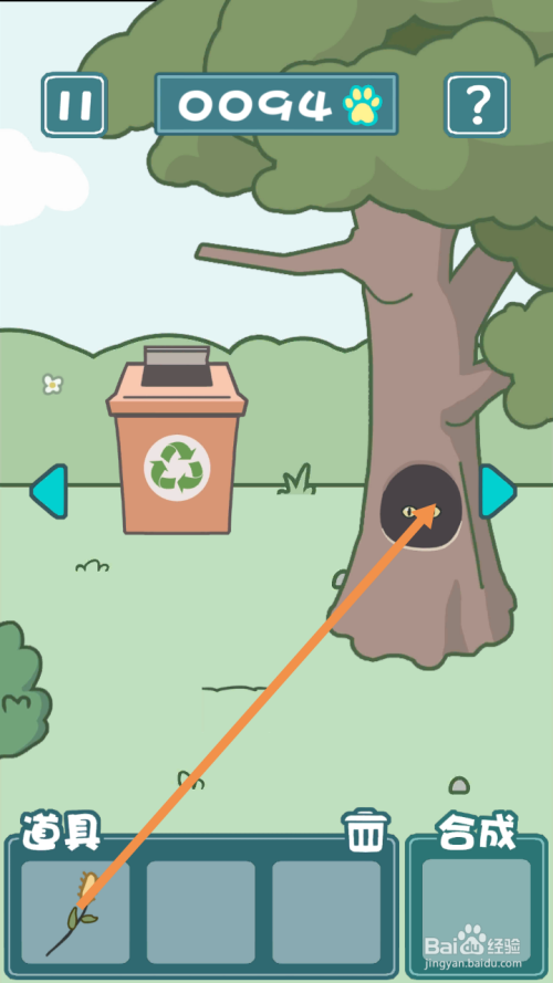获得狗从头至尾草后,点击标的目的右箭头到右边去。在右边,将狗从头至尾草拖动到树洞处就过关了。