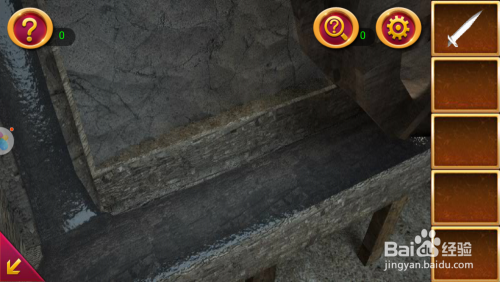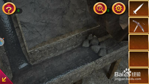 进入第一间密屋,点击前面的水槽,操纵镐将水槽里面的石头断根失落。