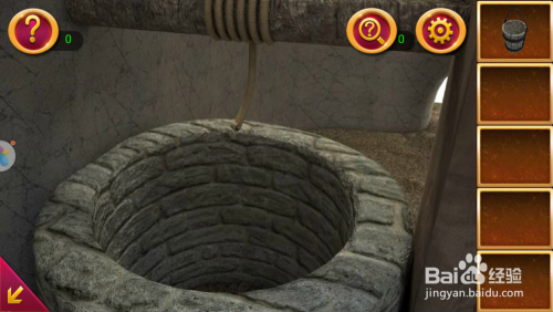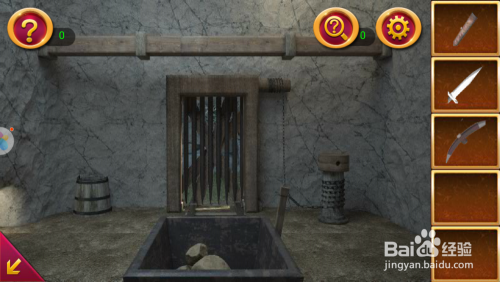 点击水槽旁边的水井,操纵短刀将木桶割下来。