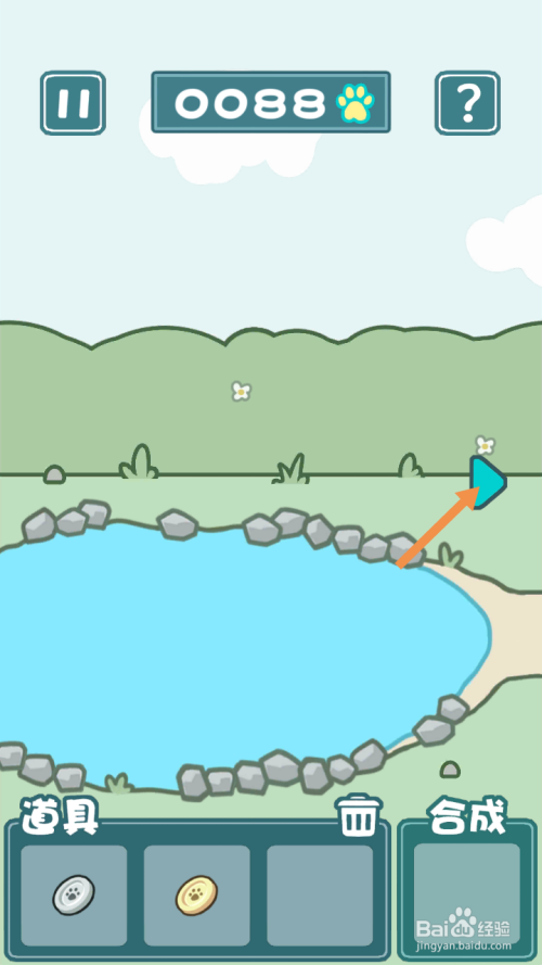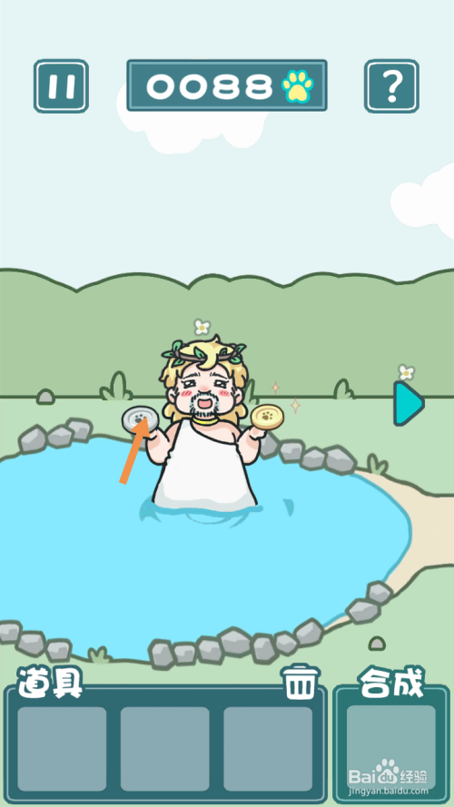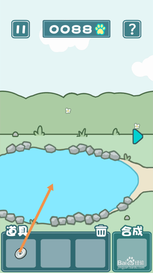 在最左边,将硬币拖动到水面上,然后点击硬币。