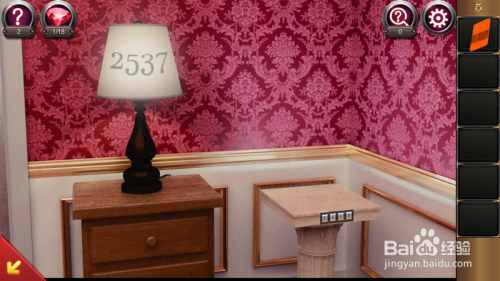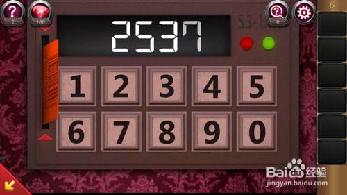 之后我们再点击门口左侧的桌子,再点击右上方密码锁,我们把磁卡插入密码锁左侧孔里,输入2537,门即可打开,即可过关。