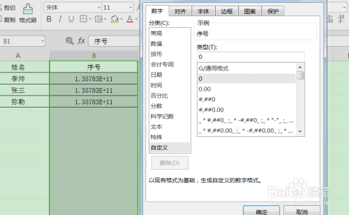 在Excel中只如果跨越12个数字就呈现乱码,呈现乱码时可以经由过程设置单位格格局:自界说-类型中选择“0”