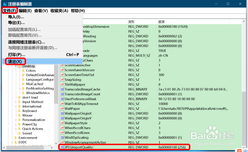 点击左上角的【文件】,鄙人拉菜单中点击【退出】,退出注册表编纂器。