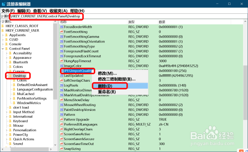 如需要恢复Windows 10系统对图片的主动压缩功能,可在注册表编纂器中删除JPEGImportQuality 的DWORD(32位)值。