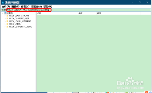 复制 \HKEY_CURRENT_USER\Control Panel\Desktop 注册表路径到注册表编纂器的地址栏中;