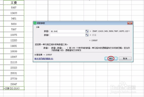 第六步:选择需要计较的数据单位格,单击“确定”按钮。