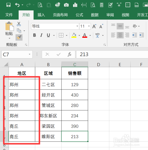 选择归并单位格区域,依次执行起头--打消归并居中。