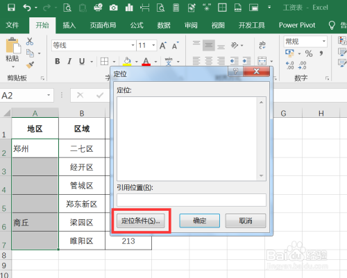 选中A2:A7单位格,并按下Ctrl+G,打开定位对话框。