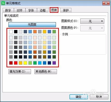 第三步:在弹出的对话框中,切换至“图案”,选择需要的颜色。