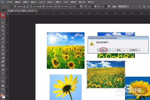 第六步:选中需要调整的图片图层,按Ctrl+T键可以调整图片的大小和位置。