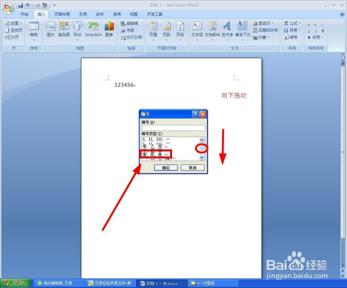 在编号对话框,单击滚动条,标的目的下拖动,找到年夜写数字格局单击