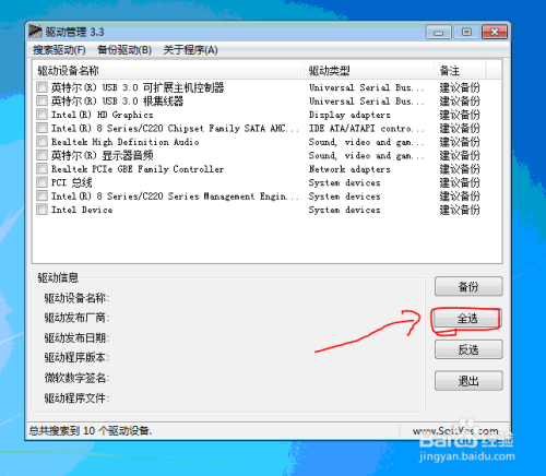 这里我们一般选择全选,若是只是备份某个单个驱动,可以直接勾选想要备份的然后点击备份即可!