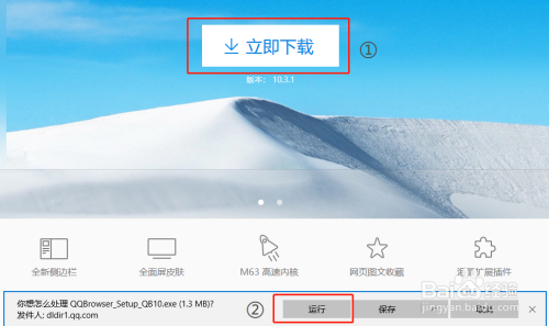 点击“当即下载”按钮,然后点击“运行”按钮。这时安装文件就会起头下载,我们需要耐烦期待下载完即可。如图所示: