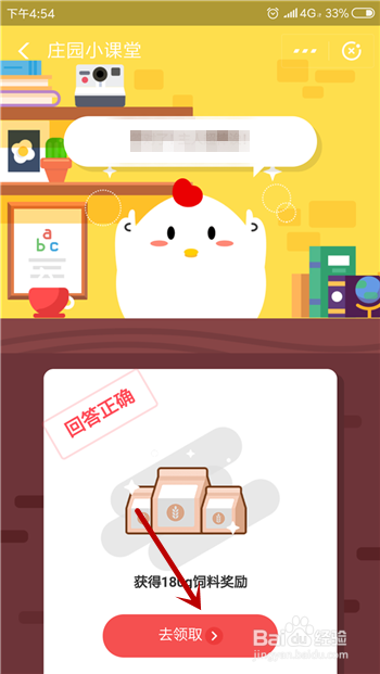 接着在蚂蚁庄园中打开小鸡领饲料使命,点击【领饲料】即可打开。