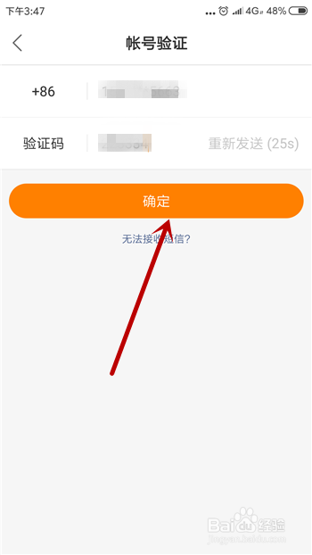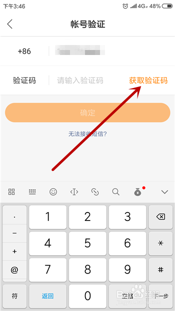 接管到验证码后填写进去,然后点击【确定】按钮。