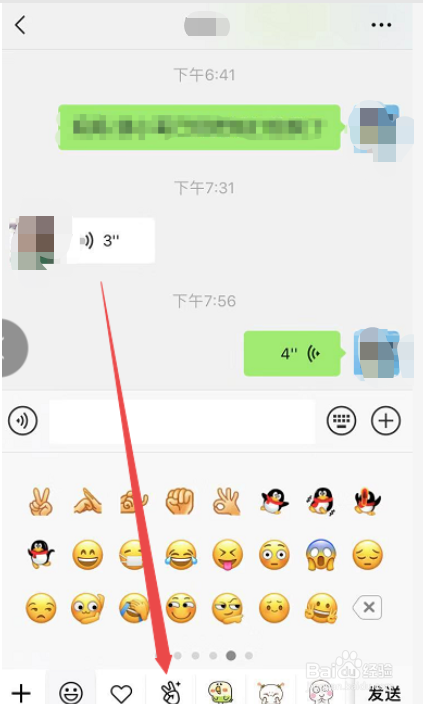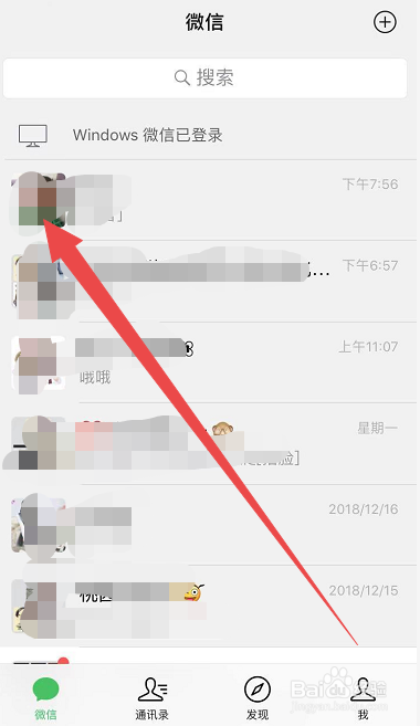 进入到微信首页之后,点击任一与他们的聊天记实,进入到聊天页面。