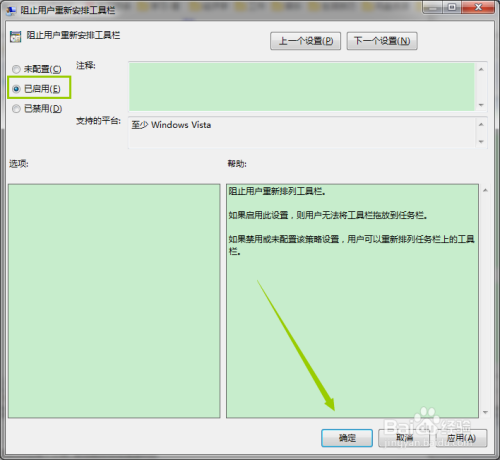 选中“已启用”,并点击确定。