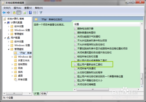 在本家儿窗口中,找到“阻止用户从头放置东西栏”;