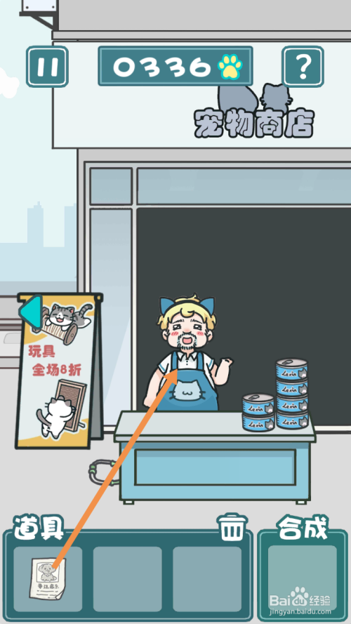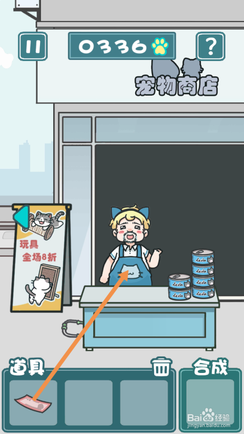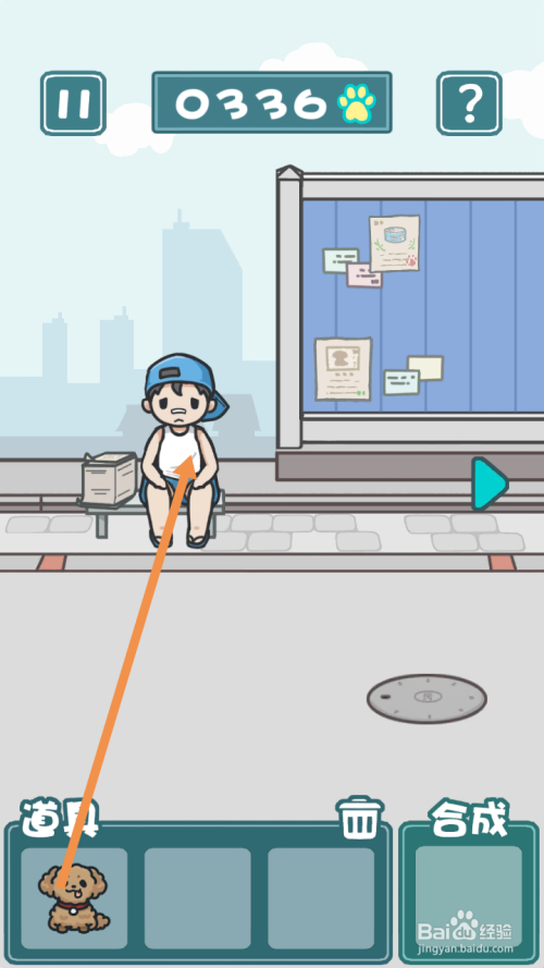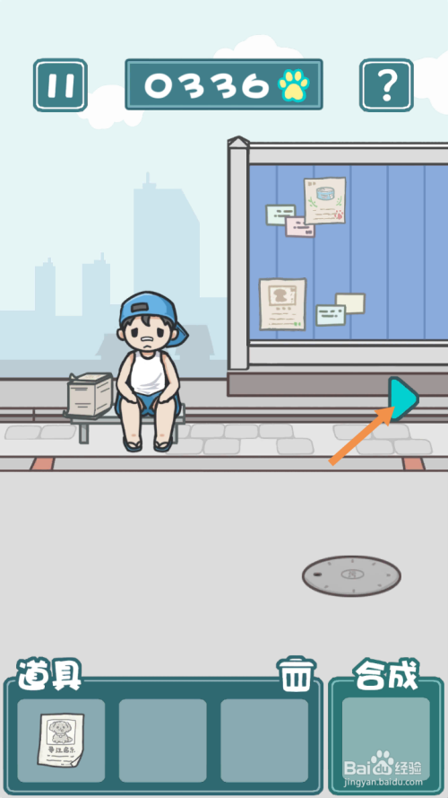 小男孩走后,点击钞票,然后点击标的目的右箭头到右边去。