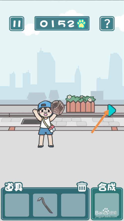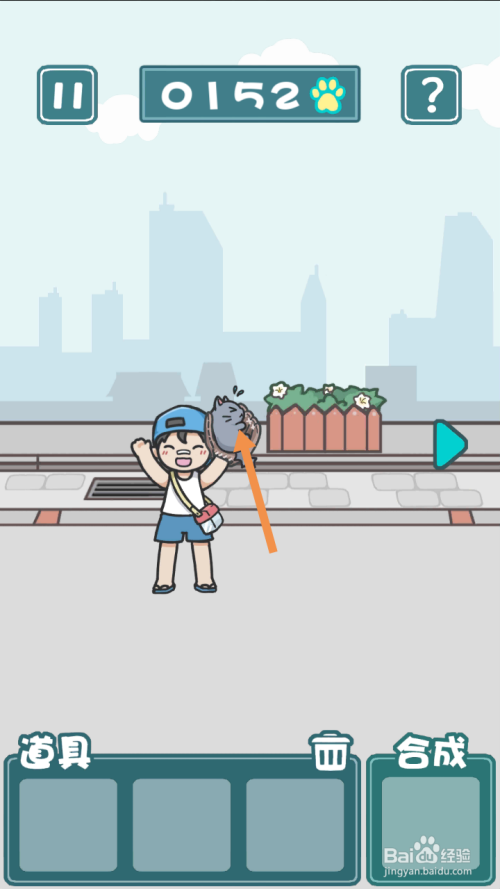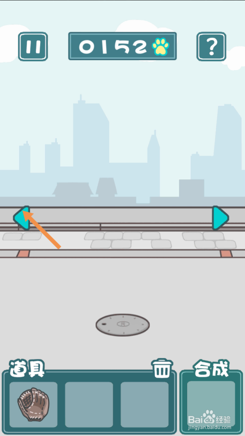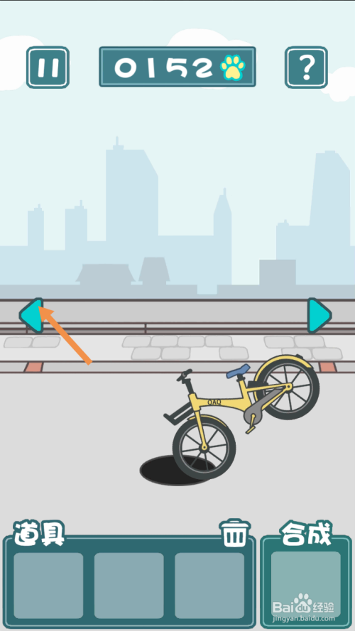 猫从自行车上飞出去后,点击标的目的左箭头到最左边去。在最左边,点击小猫咪就过关了。