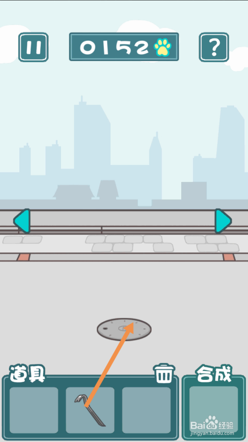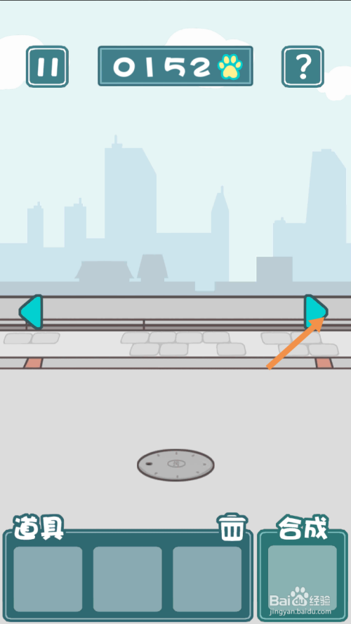 点击标的目的右箭头到右边去。在右边,将物理学圣剑拖动到井盖处。