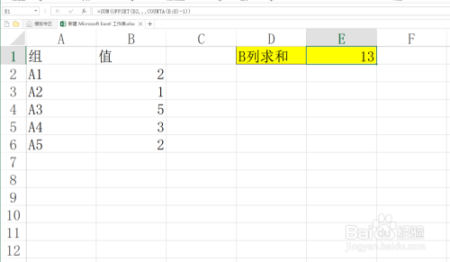 为了便于理解教程以下列数据为例,对B列数据乞降,然后将成果显示在E1单位格中。
