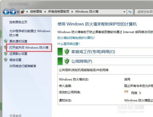 进入windows防火墙之后,我们就可以起头设置防火墙的各个选项了。一般我们利用防护墙有两种常用的设置,其一就是封闭防火墙,因为有些软件安装的时辰要求封闭防火墙,那么我们就需要点击左侧封闭防火墙的选项打开。