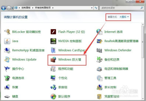 进入节制面板后,选择年夜图标的查看体例就可以在页面上找到windows防火墙图标了,点击进入就可以设置防火墙了。