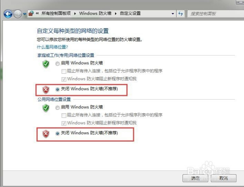 然后选择封闭windows防护墙设置,点击确定就可以了。