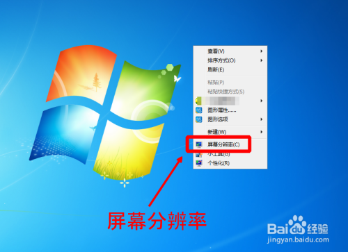 在电脑桌面单击鼠标右键,点击屏幕分辩率即可跳转到分辩率设置页面。