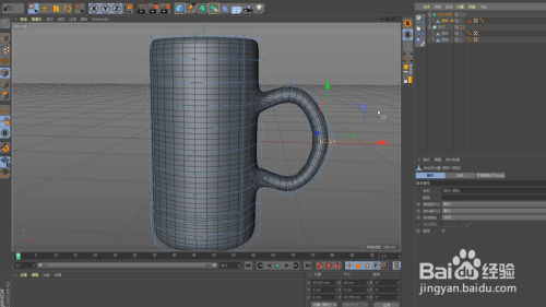 将物体的外形摆好后,添加布尔设置相关选项;注重把手的部门不克不及到杯子的内壁外