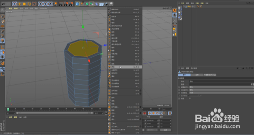 选择顶部和底部的点,右击倒角,之后进入面模式,选择顶面右击挤压