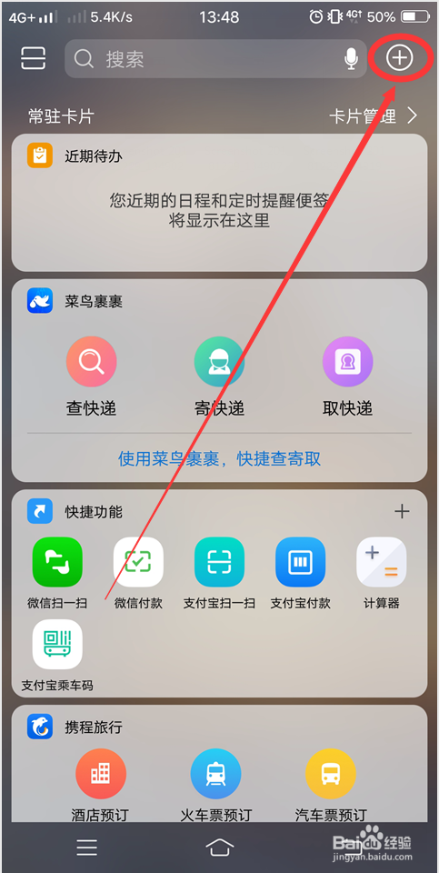 点击右上角的“+”号。点开后,里面是卡片保举的内容。