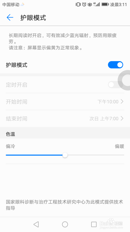 屏幕选项中护眼模式,打开可以削减蓝光的辐射,削减眼睛委靡。