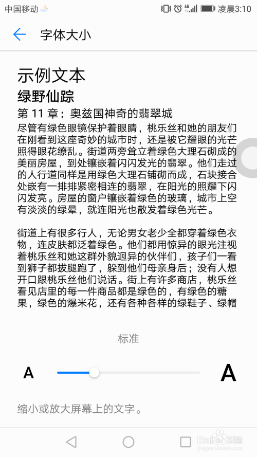 在个性化设置里面找到字体大小选项,可以调节屏幕上的字体的大小,按照小我看屏幕舒畅水平经由过程拉动进度条调整字体大小。