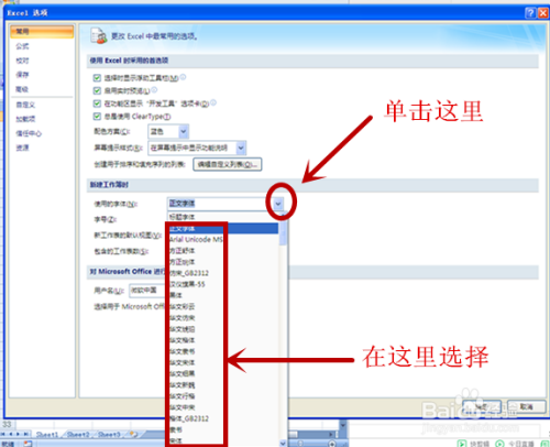 单击这个下拉箭头,鄙人拉列表我们可以选择默认字体。