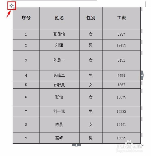 第二步:鼠标左键单击红色方框标识表记标帜的符号,选中全数表格。