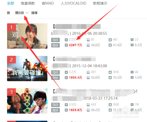 最后我们就可以看到哔哩哔哩上播放数目最多的鬼畜视频排名了,最高的达到2000多万
