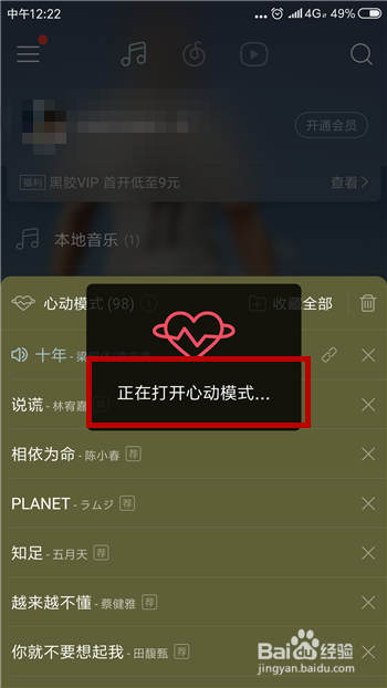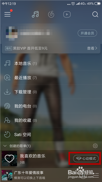 在听歌界面的下方可以看到【我建立的歌单】,找到里面的【喜好的音乐】就可以在后方看到【心动模式】,点击这个模式。
