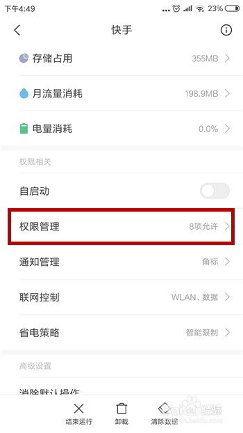 接下来会进入到手机快手的办理界面点击【权限办理】选项。